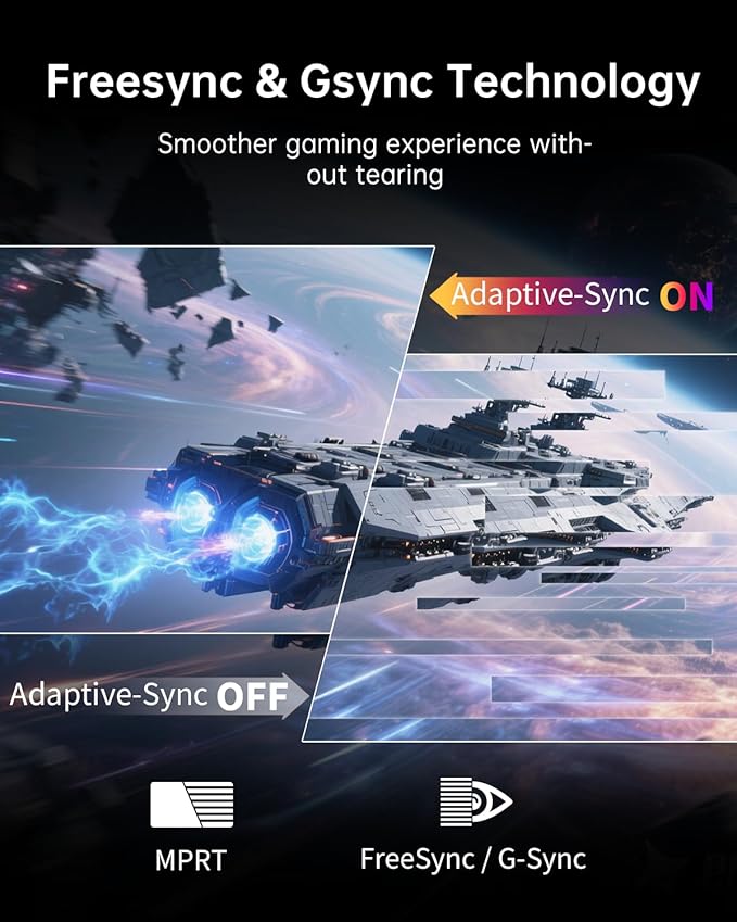 - Adaptive Sync Technology: Equiped with Freesync and G-sync compatibility, the monitor 4k gaming exsures tear-free and stutter-free gameplay, making it ideal for competitive gaming. Enjoy immersive and smooth visuals without input lag or ghosting