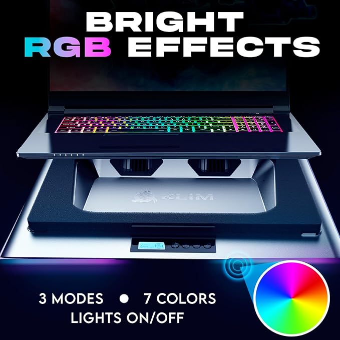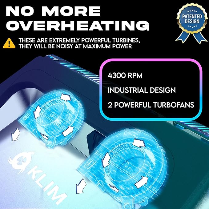 KLIM Everest Laptop Cooling Pad | Powerful 4300 RPM Turbo Fans | Sealed Foam for Maximum Cooling | Protect Your Gaming Laptop from Overheating | Fits 14” to 17.3” Laptops | RGB Lights