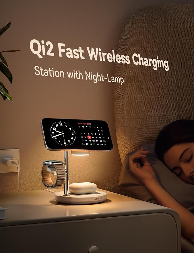 - Innovative 4-in-1 Charging Station for Apple Ecosystem: JOYROOM Qi2.0 Certified Super Fast Wireless Charger for iPhones, offer 2X faster charging speed than ordinary 7.5W Magsafe chargers, features with a 3W fast wireless charging spot for Apple watch series, plus a 5W fast wireless charging base for AirPods.Featuring JOYROOM innovative smart interactive warm/cold adjustable night-lamp, set the perfect ambiance for comfort