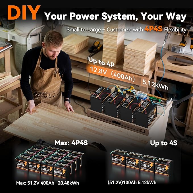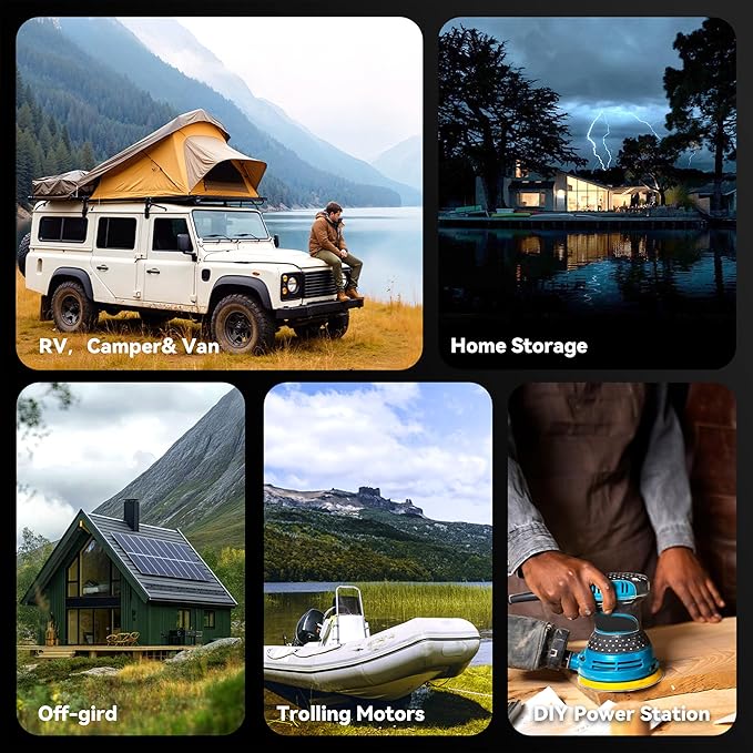 - 【DIY EXPANDABLE – FOR TROLLING MOTORS & VEHICLE POWER BANKS】 Supports flexible 4S4P configuration, allowing you to build 12V, 24V, or 48V power systems. Ideal for powering trolling motors (30–70 lb thrust), UTV accessories, portable fridges, CPAPs, and emergency power setups—perfect for off-grid adventurers and automotive DIYers.