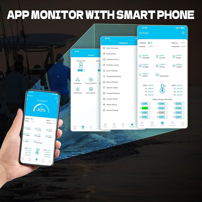 - 【Complete Accessories & Ready to Use Upon Receipt】:We provide monitors , charger specifically designed for golf carts, fixed ropes and connecting wires for you. It saves you from wasting time on purchasing other accessories and avoids the risk of not being able to use them after purchase. Once you receive the battery, you can install and use it!