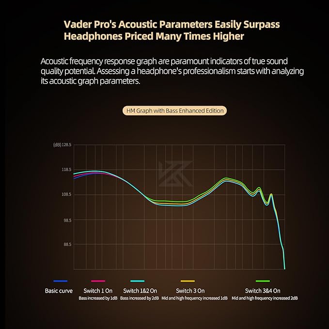 - 4-Level Switch for Tuning: Vader Pro built-in professional electronic filter and supports user-customized sound adjustments. Whether in terms of tuning range, adjustment precision, or amplitude modulation, they surpass traditional damping tuning solutions by far. Clear and clean sound quality from mids and treble makes this iem earphone great ear monitors for stage and studio