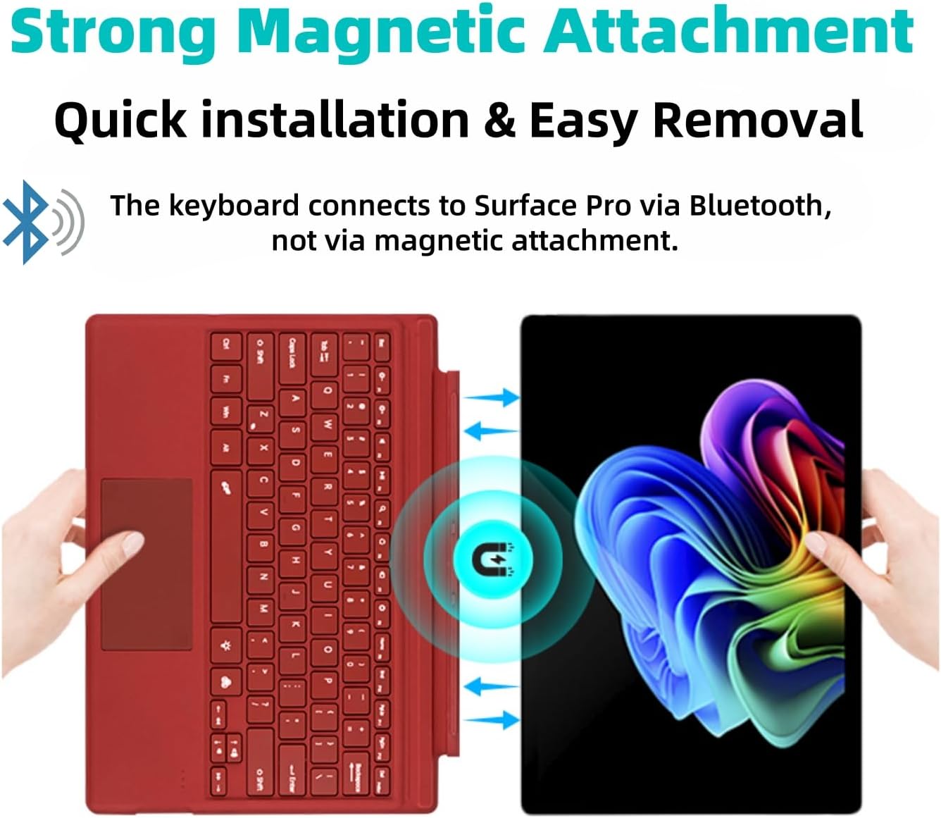 Keyboard for Microsoft Surface Pro Copilot+ (11th Edition) / Pro 11 / Pro 10 / Pro 9 / Pro 8 / Pro X, 13 inch, Detachable Type Cover with Touchpad, 7-Color Backlit & Pen Holder (Red)