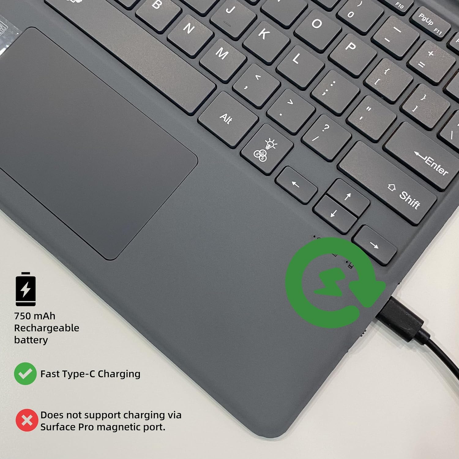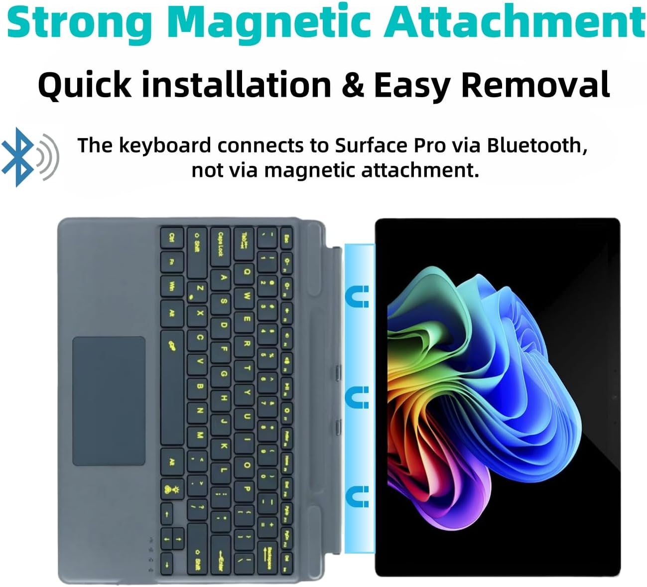 Keyboard for Microsoft Surface Pro Copilot+ (11th Edition) / Pro 11 / Pro 10 / Pro 9 / Pro 8 / Pro X, 13 inch, Detachable Type Cover with Touchpad, 7-Color Backlit & Pen Holder(Grey)