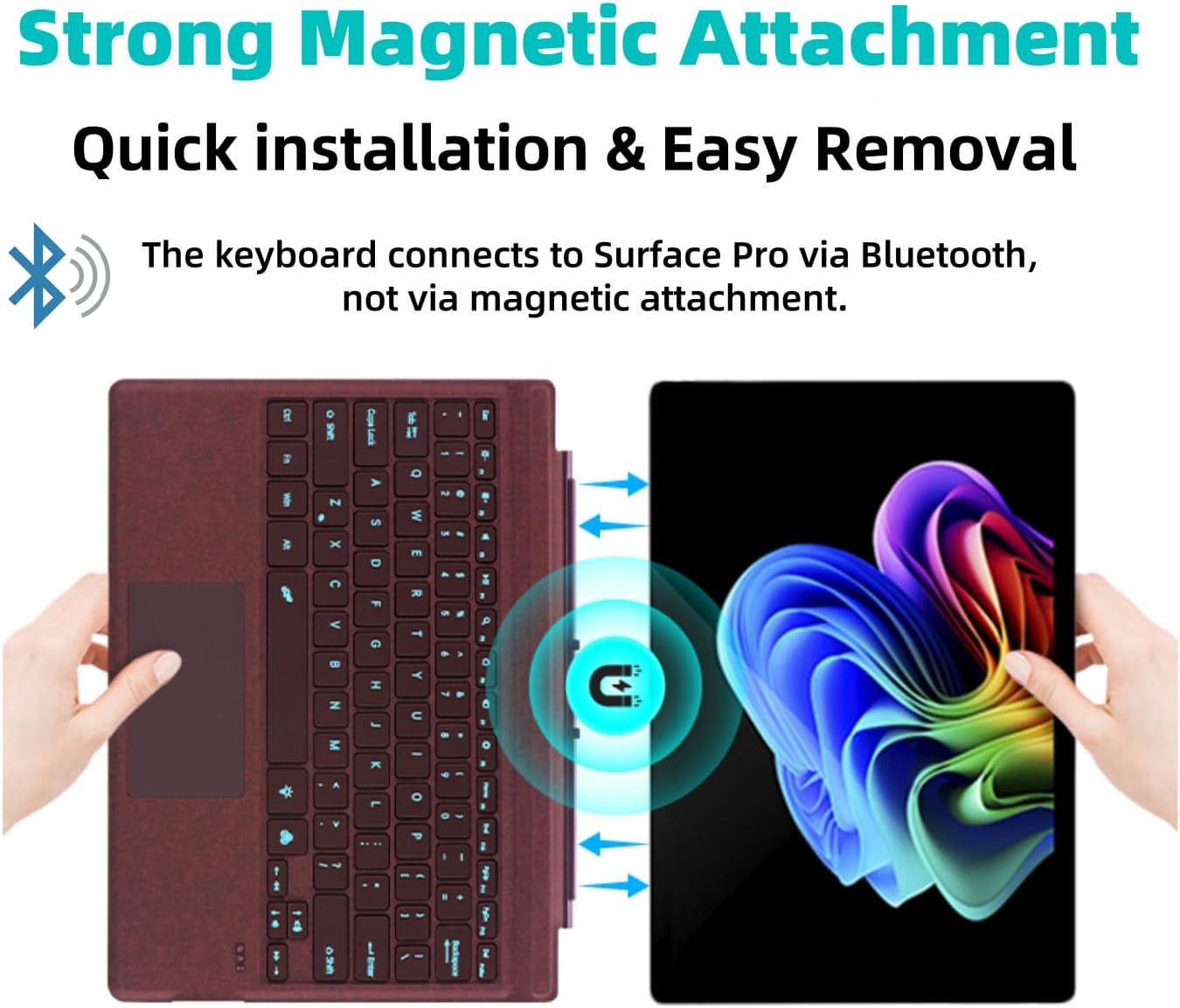 Keyboard for Microsoft Surface Pro Copilot+ (11th Edition) / Pro 11 / Pro 10 / Pro 9 / Pro 8 / Pro X, 13 inch, Detachable Type Cover with Touchpad, 7-Color Backlit & Pen Holder (Wine)