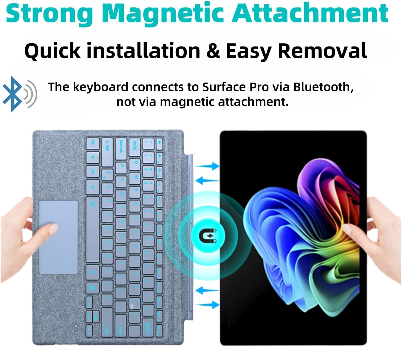 Keyboard for Microsoft Surface Pro Copilot+ (11th Edition) / Pro 11 / Pro 10 / Pro 9 / Pro 8 / Pro X, 13 inch, Detachable Type Cover with Touchpad, 7-Color Backlit & Pen Holder (Ice Blue)