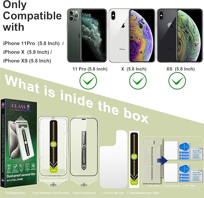 - Bubble-Free,Case-Friendly Fit: Designed for perfect fit and full case compatibility,this iPhone X/XS/11 Pro screen protector offers sensitive touch response and stays bubble-free.Enjoy long-lasting,seamless protection that works perfectly with your favorite phone case