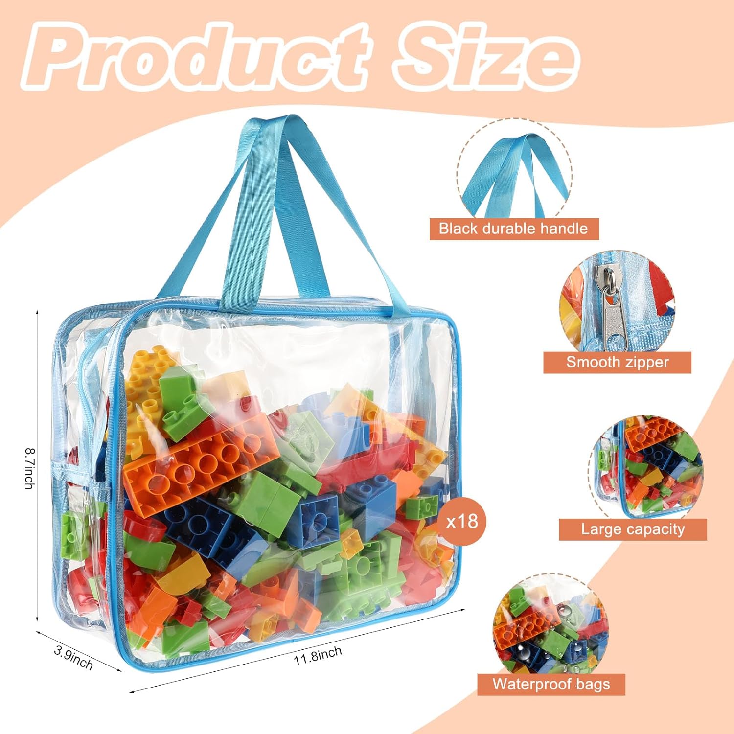 - Transparent PVC Material: Made from high-quality, waterproof transparent PVC, these clear toy storage bags not only keep toys clean and dry but also allow for easy identification of contents, saving you time during cleanup. The smooth surface is easy to clean after use.