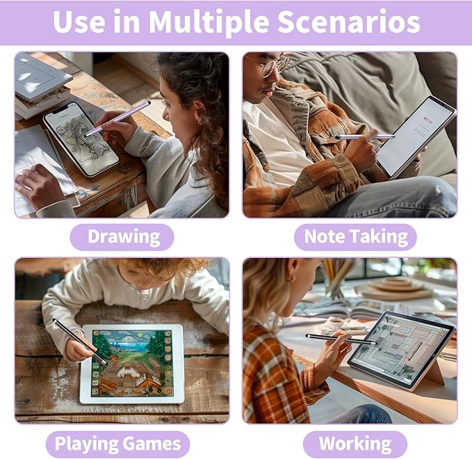 - 【Stylus Pen for Touchscreen】Our stylus pen requires no Bluetooth pairing or charging, you can unleash your creativity anytime and anywhere, just pick up the stylus and express your thoughts freely on the touch screen.