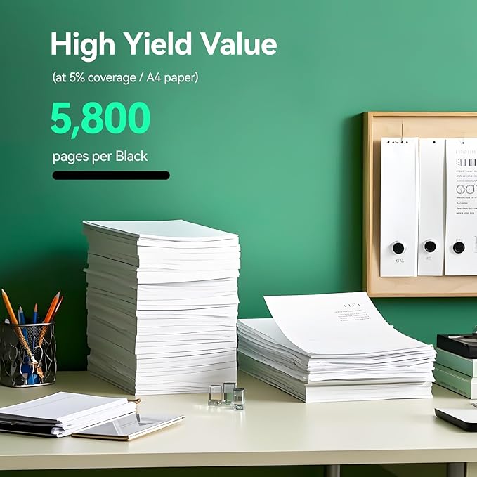 - High Page Yield: One black yields up to 2900 pages each, 2-Black total yield up to 5,800 pages each (at 5% coverage of Letter A4)