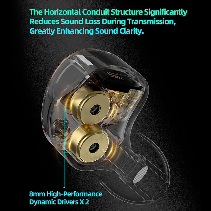 - 【New Horizontal Drivers Gaming Headphones】 These KZ earbuds Taurus place two dynamic drivers horizontally within the earbuds. Reduced distance between the drivers minimizes sound transmission loss, preserving natural sound with rich details. Two 8mm high-performance dynamic drivers deliver powerful deep bass vibrations, maximizing the in ear monitors' audio performance. Surround sound enables precise sound localization in FPS or MOBA games, enabling you to control over the game.