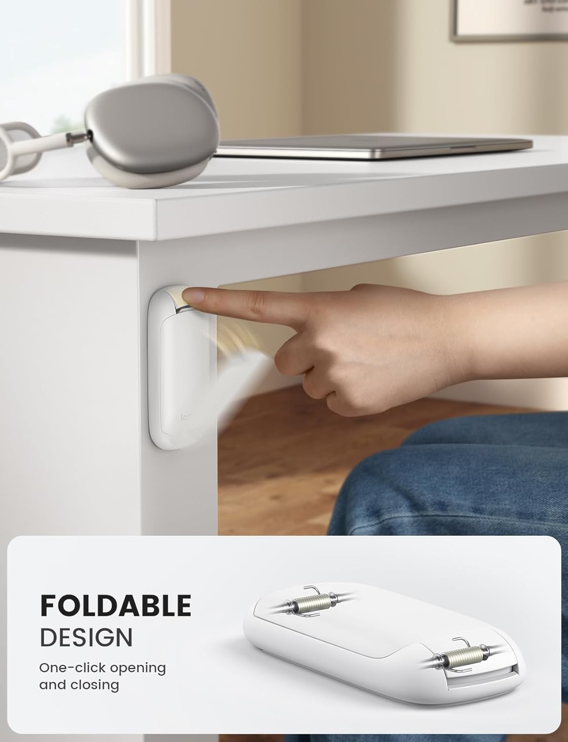 - 【Foldable for Easy Use & Storage】Experience ultimate convenience with our innovative headphone holder. It opens and closes smoothly with one hand, making storing and retrieving your headphones effortless. The entire stand is foldable, collapsing into a slim, flat profile that's incredibly space-efficient. Making it the perfect organization solution for your headphone.